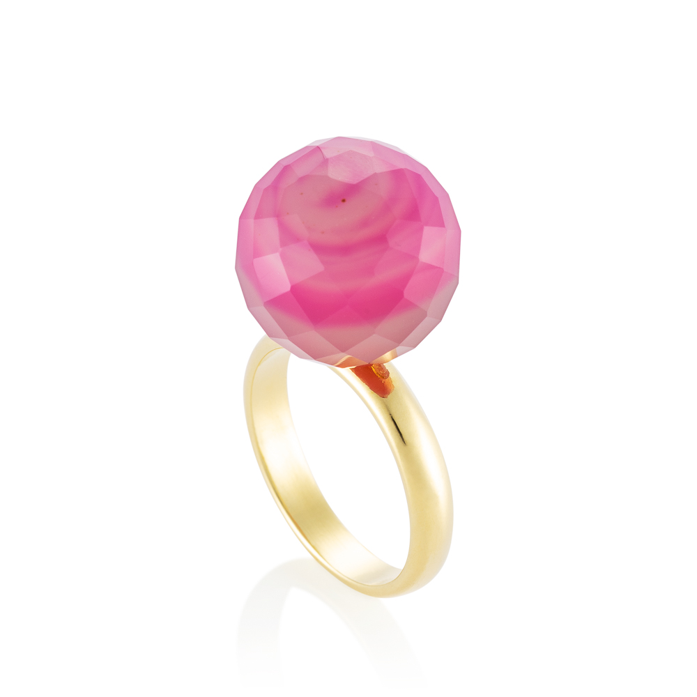 Anel Bubble banhado a ouro com ágata rosa.