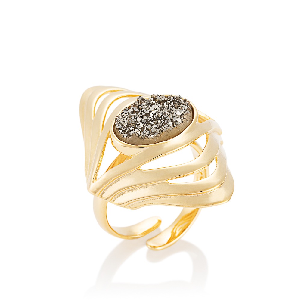 Anel banhado a Ouro com pedra Drusa.