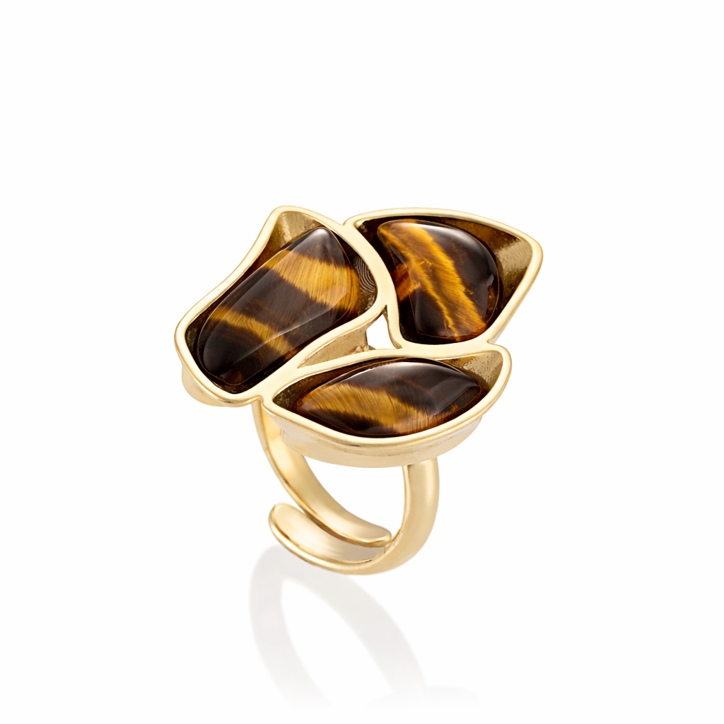 Anel Vessel 607 banhado a Ouro com pedra Olho de Tigre