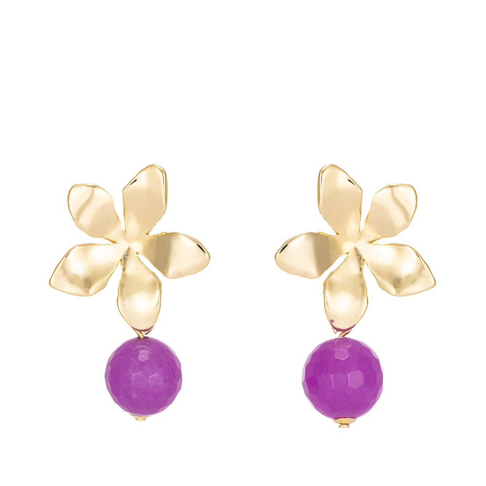 Brinco banhado a ouro com pingente removível de ágata roxa.