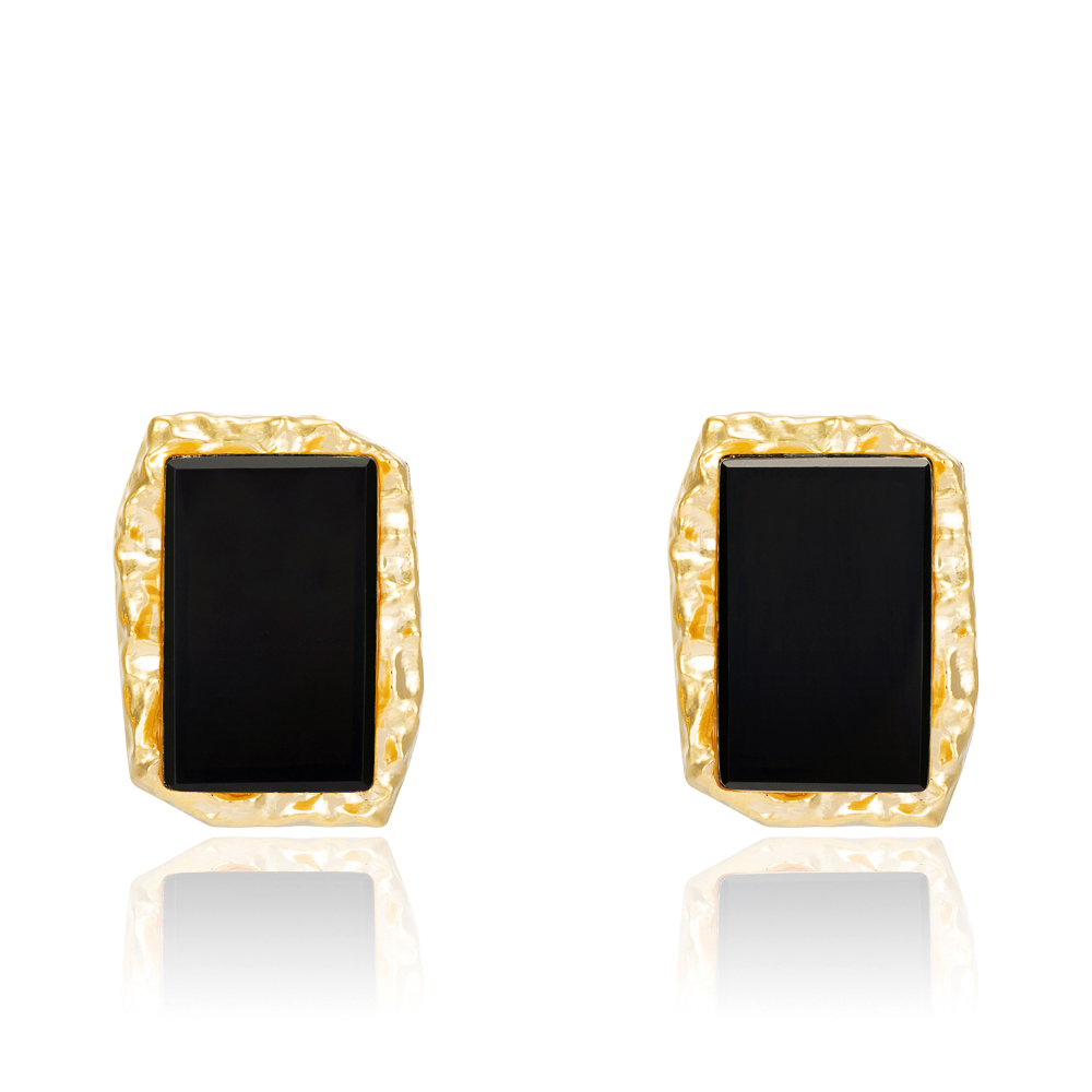 Brinco banhado a ouro com quartzo negro.