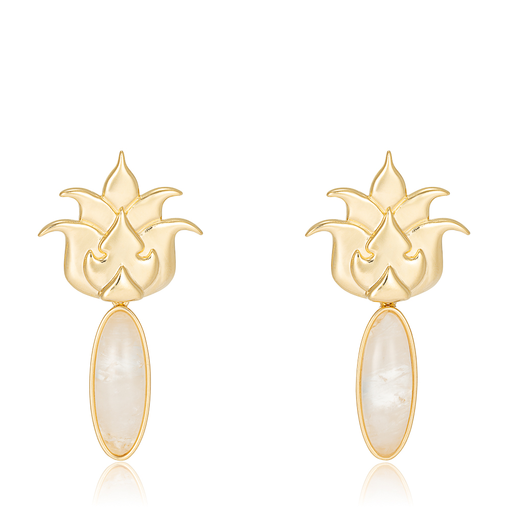 Brinco banhado a ouro com Quartzo Branco e pingente removível para criar novas combinações.