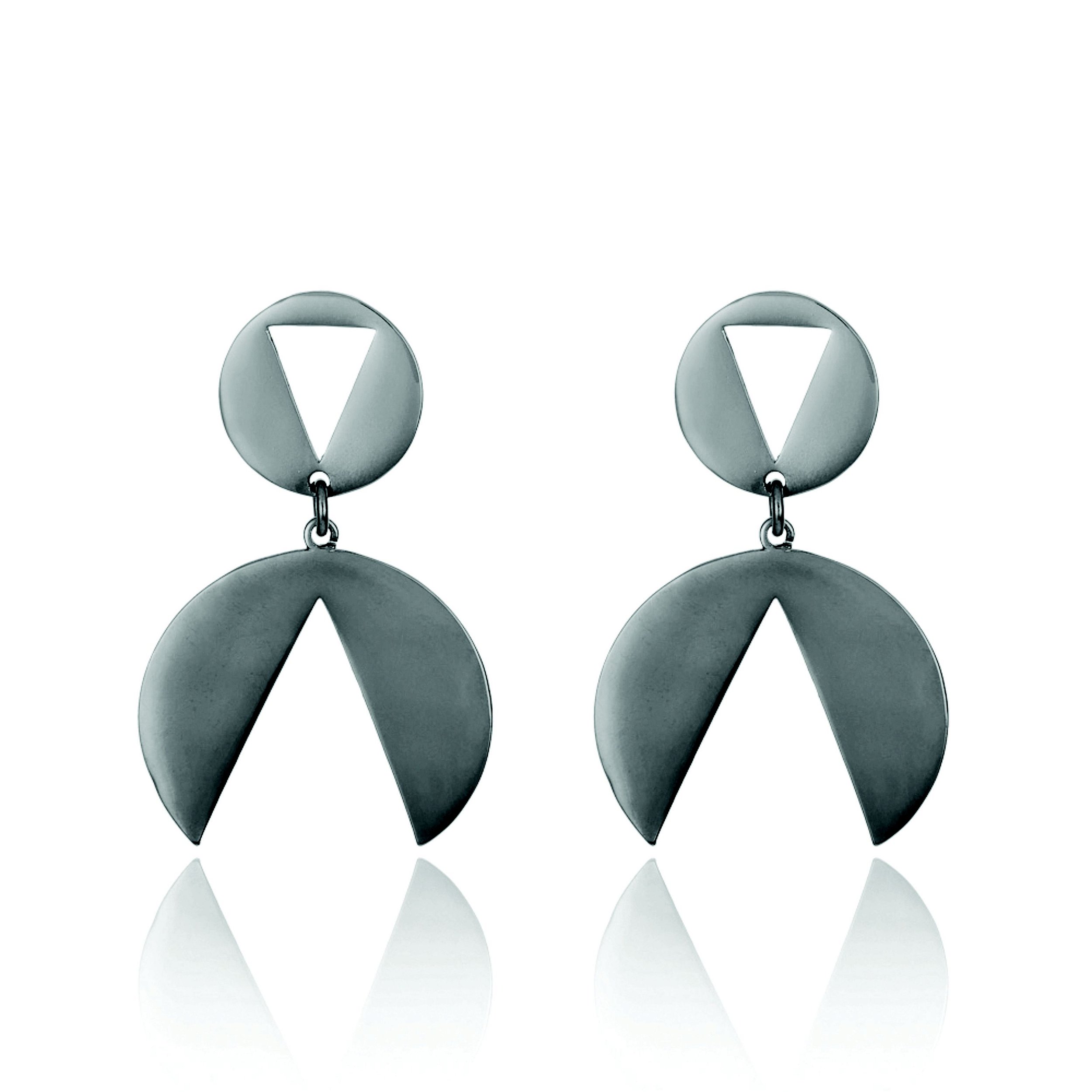 Brinco ródio negro, inspirado nas esculturas de Amílcar de Castro.