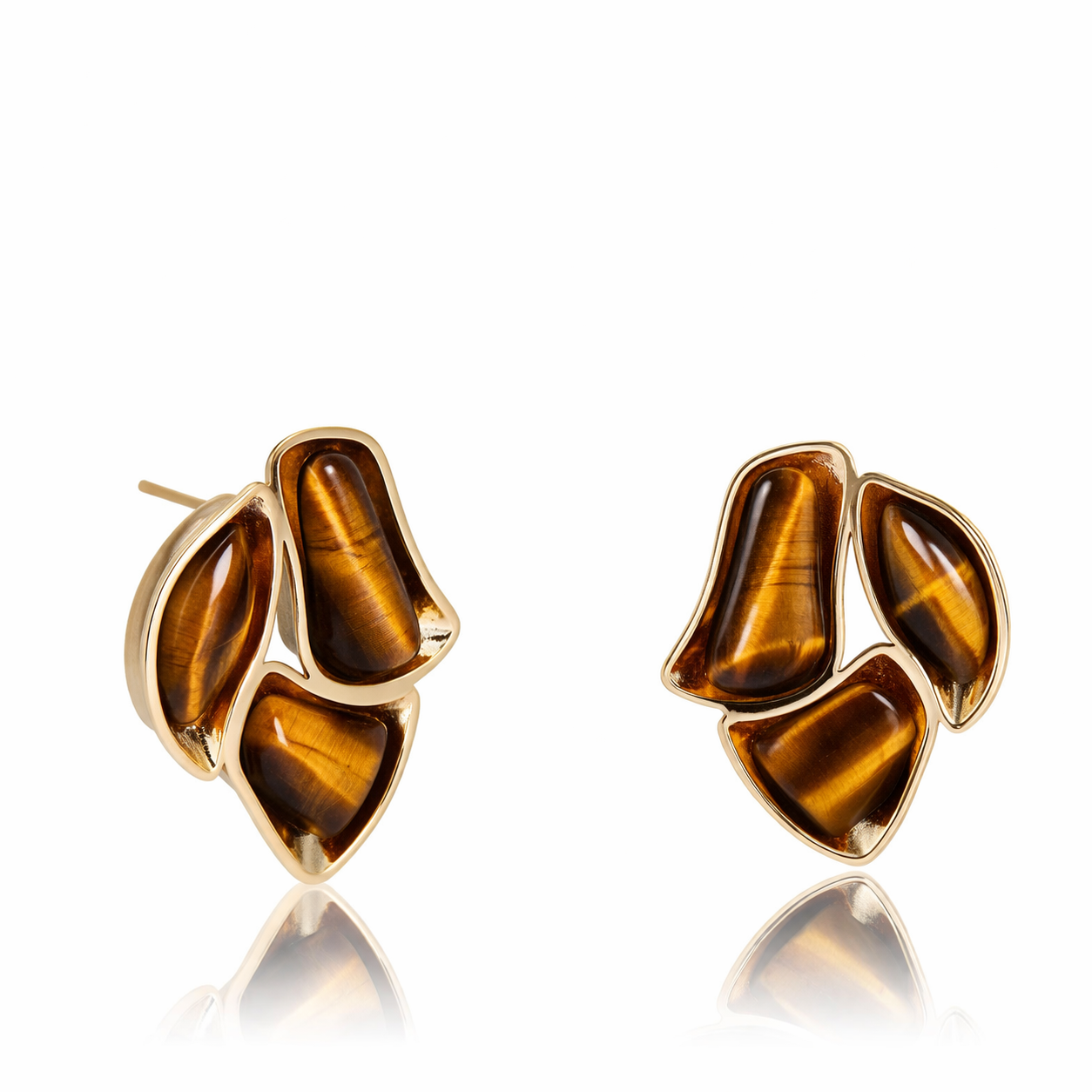 Brinco Vessel 1168 banhado a ouro com pedra Olho de Tigre.