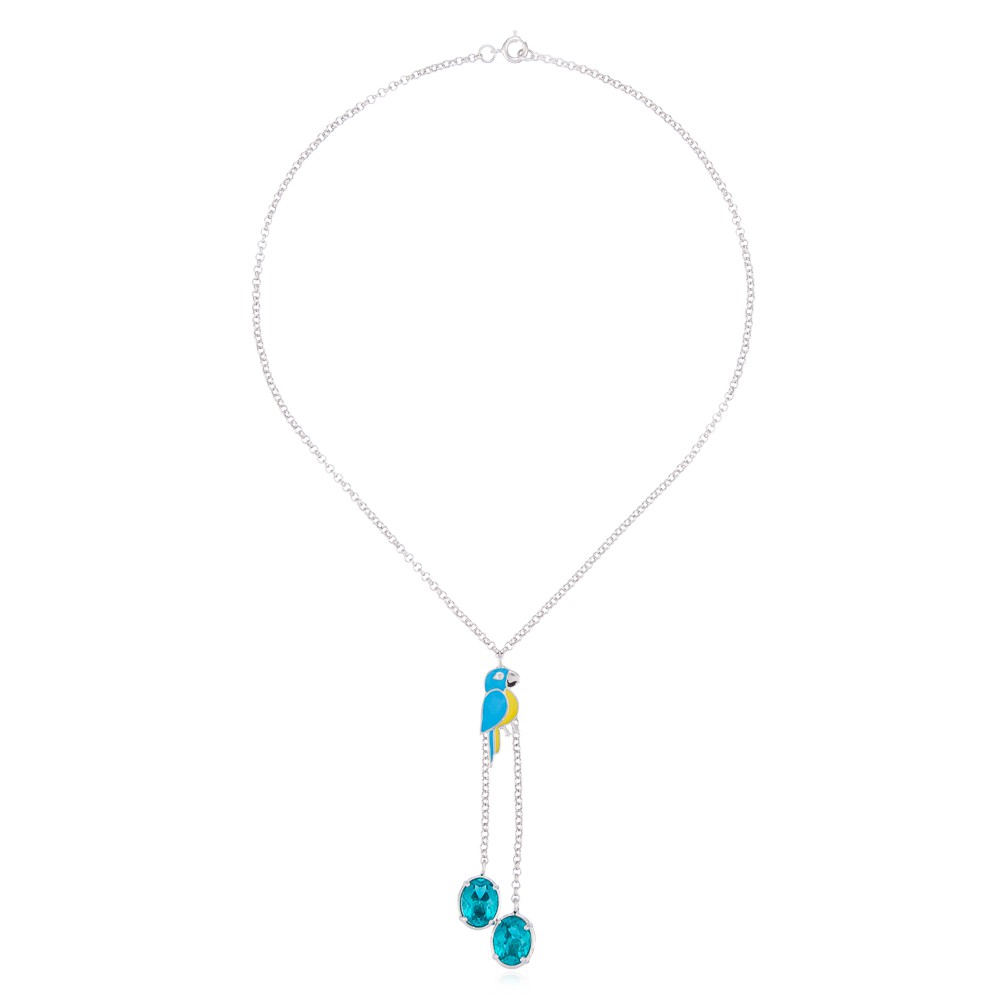 Colar Arara banhado a ródio e esmaltado com cristal color.
