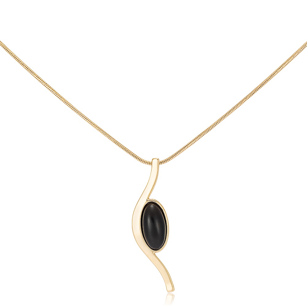 Pingente banhado a Ouro com pedra Quartzo Negro.