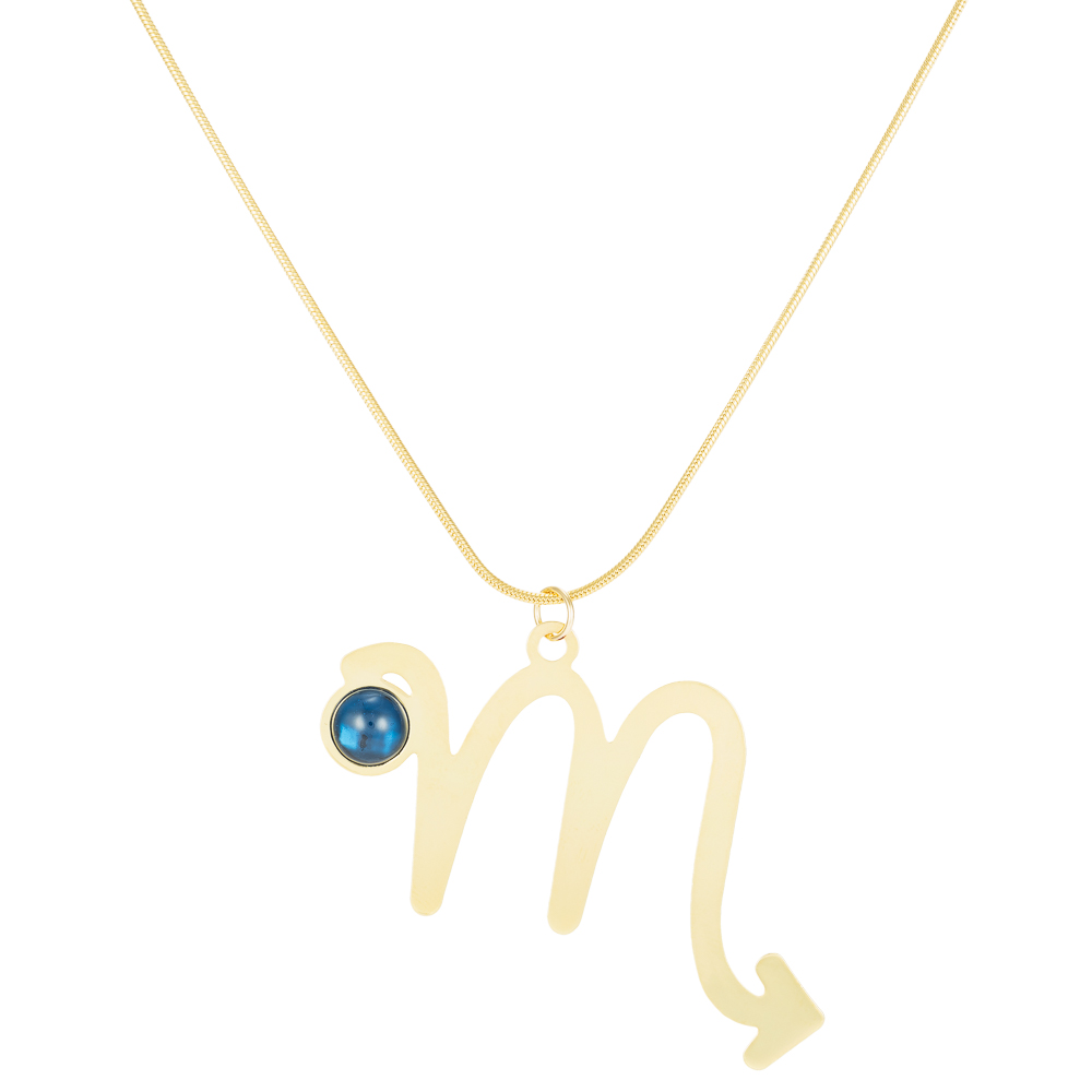 Pingente do signo de Escorpião banhado a ouro com quartzo zul